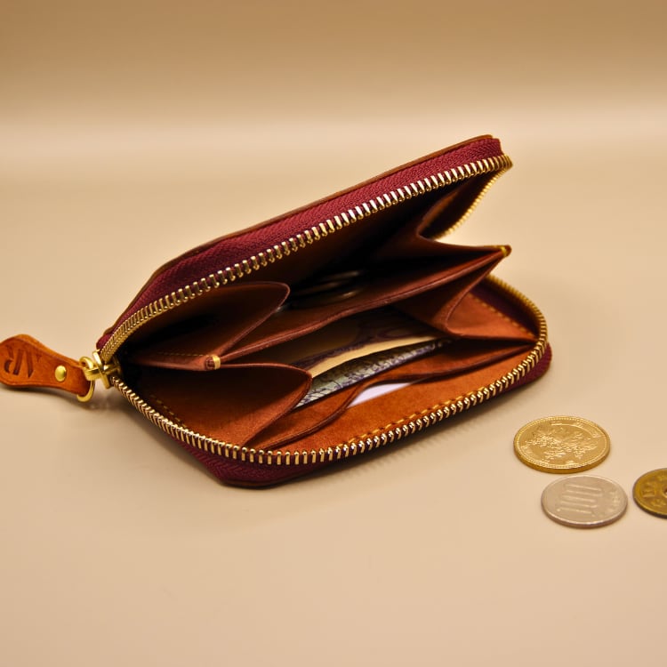 他にも、持ち手の形状や刻印にもこだわったミニ財布となっております。