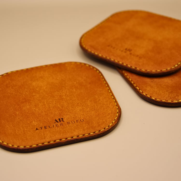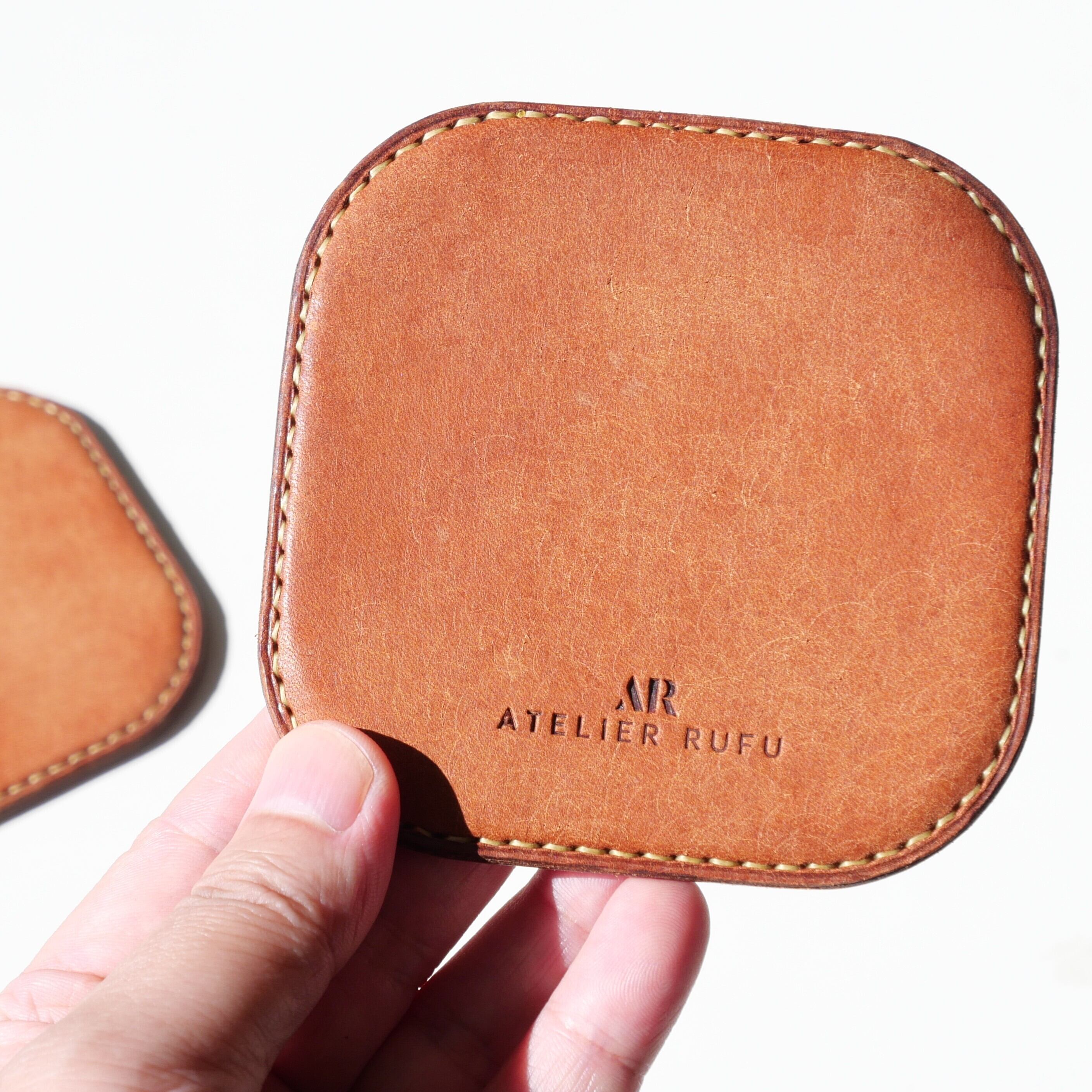 革のコースターです。