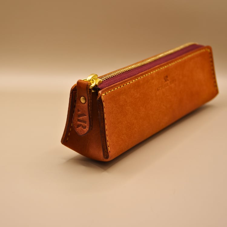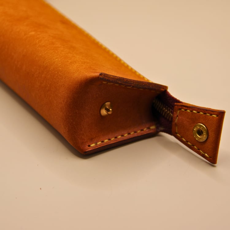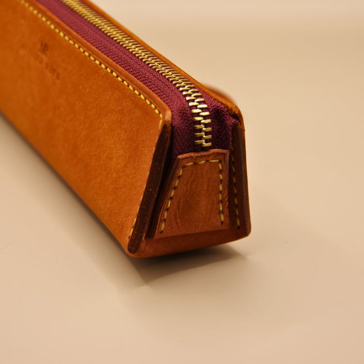 エイジングによりツヤが出て、味わい深い濃い色へと経年変化していくタンニンなめし革です。